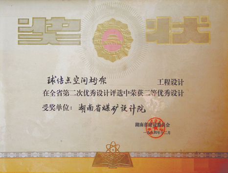 湖南省優(yōu)秀設計項目二等獎(1984)