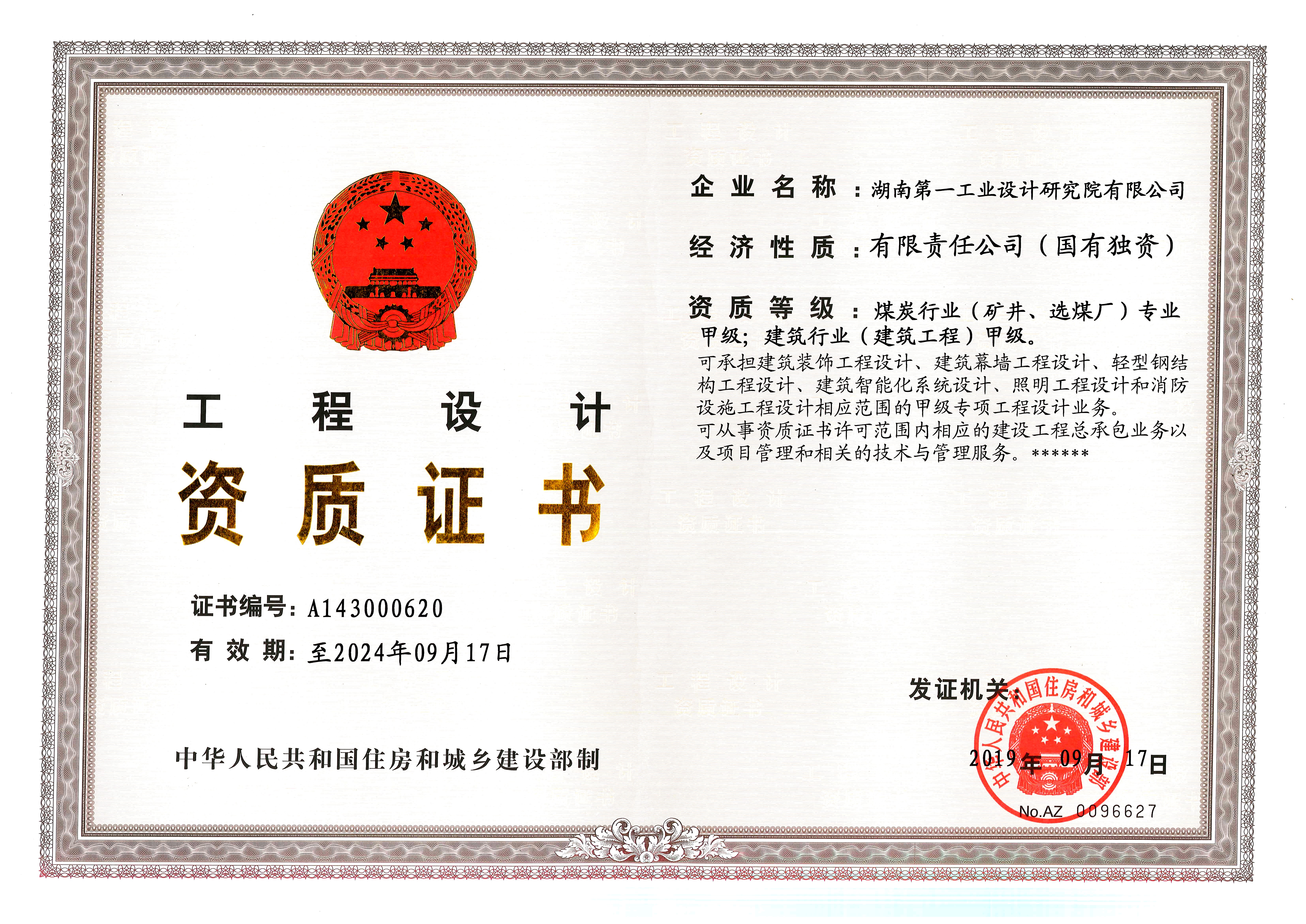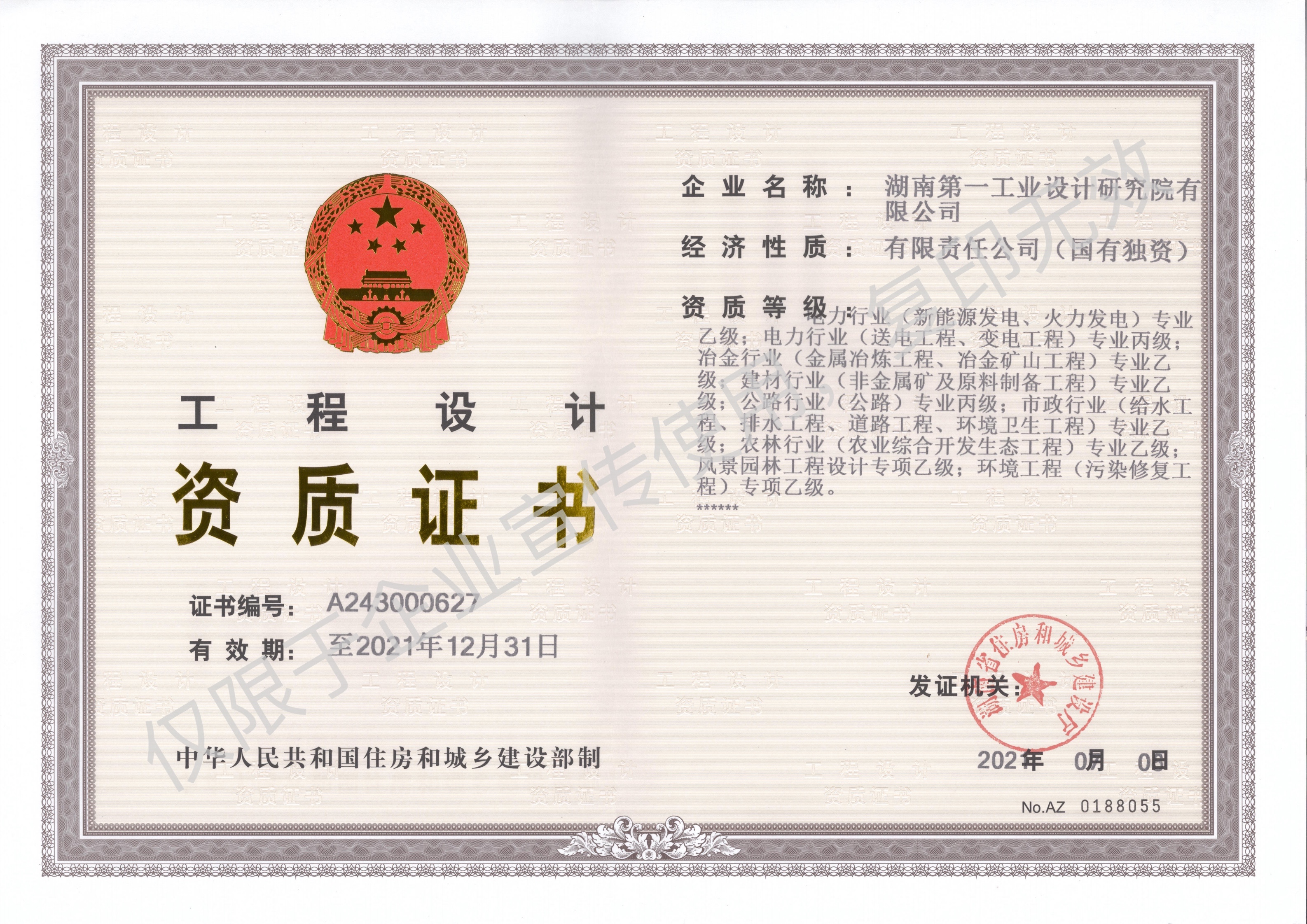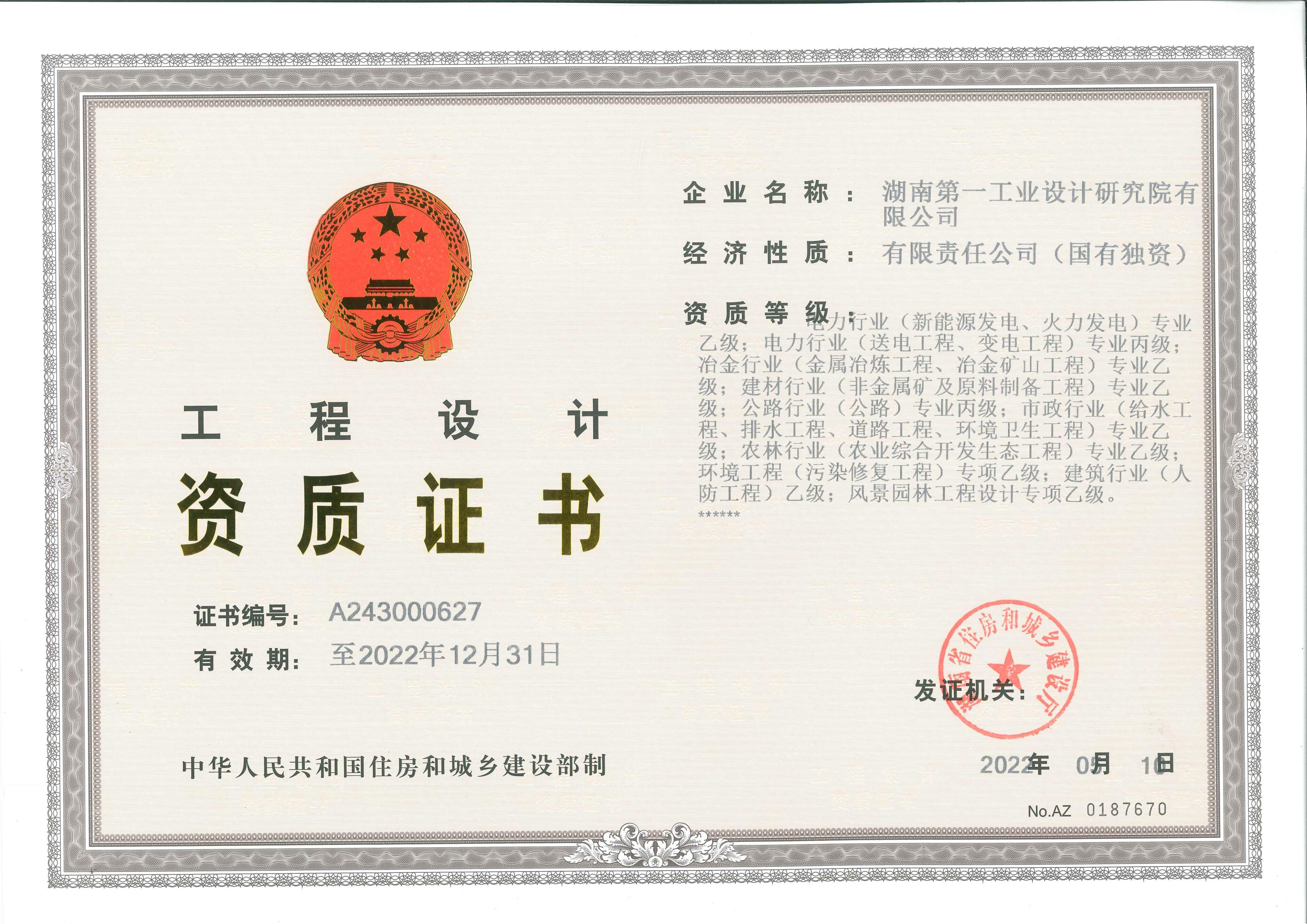 工程設計資質(zhì)證書