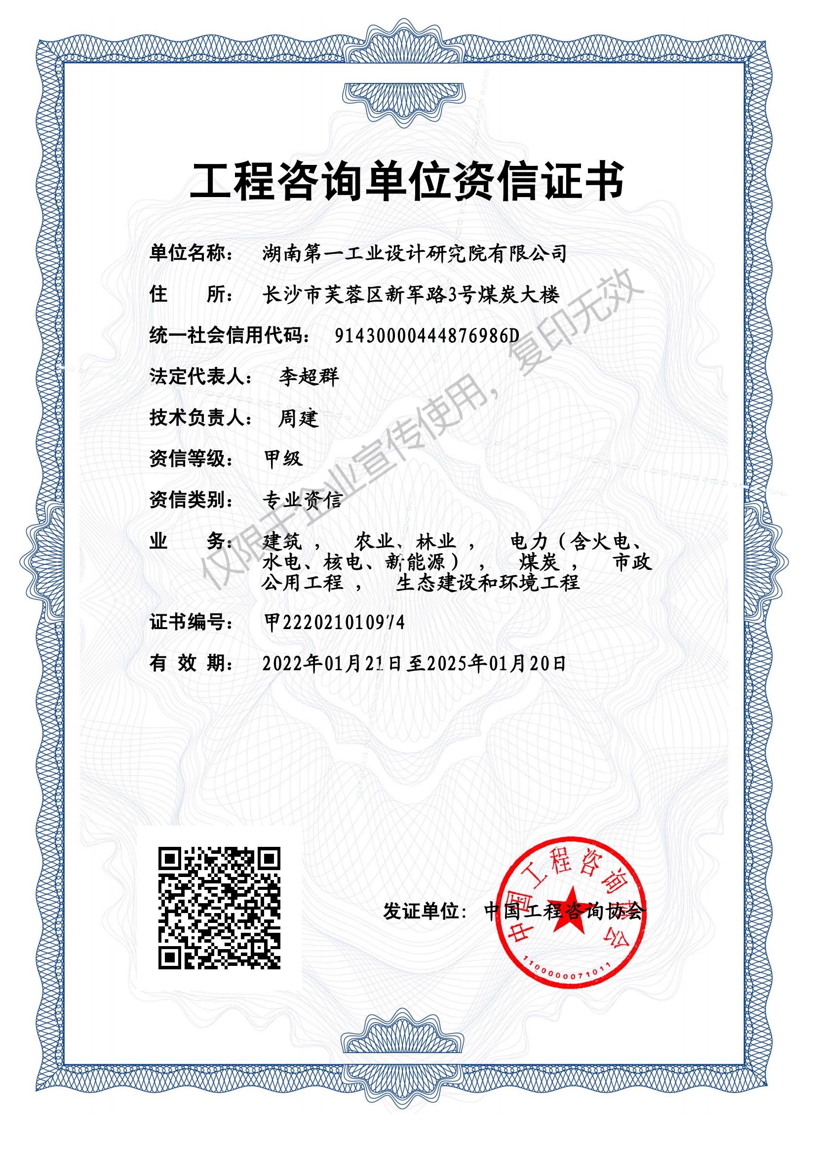 工程咨詢單位甲級資信證書