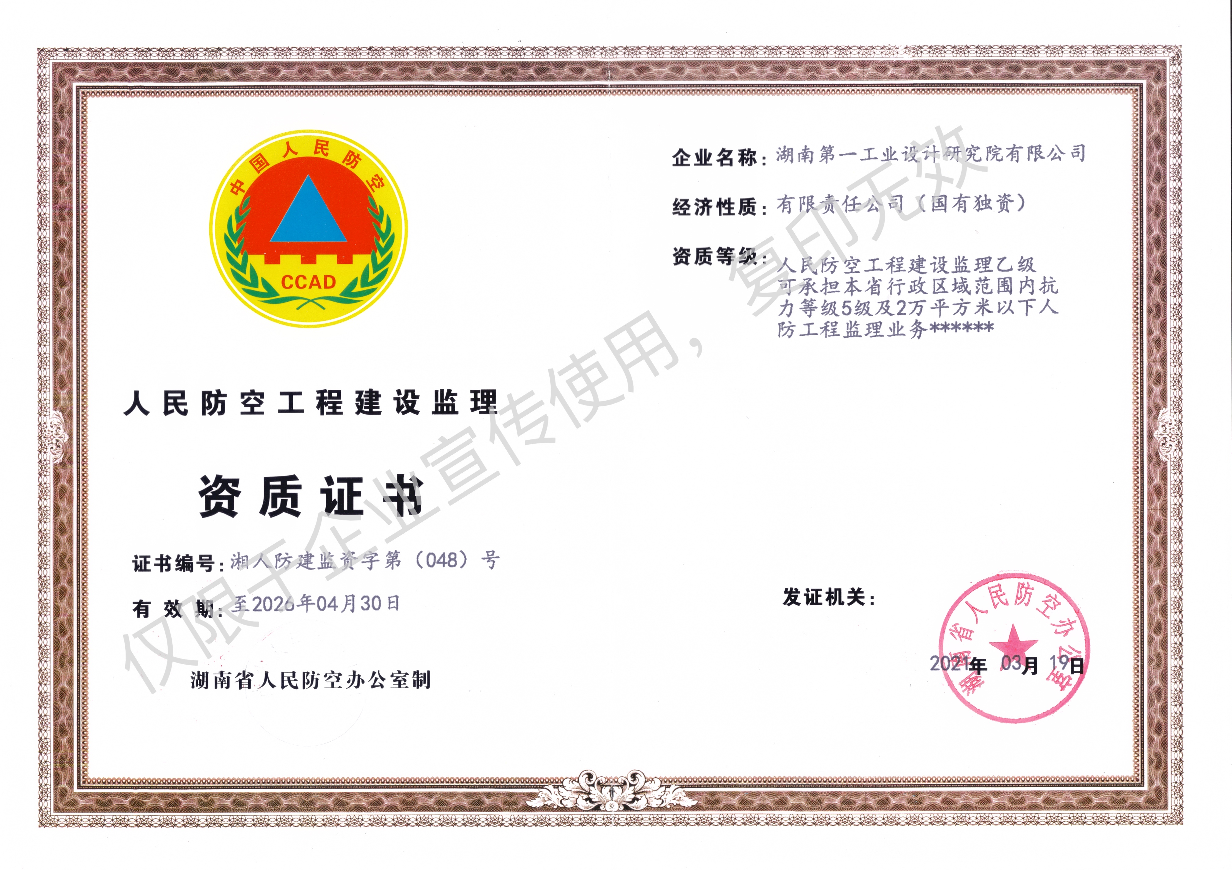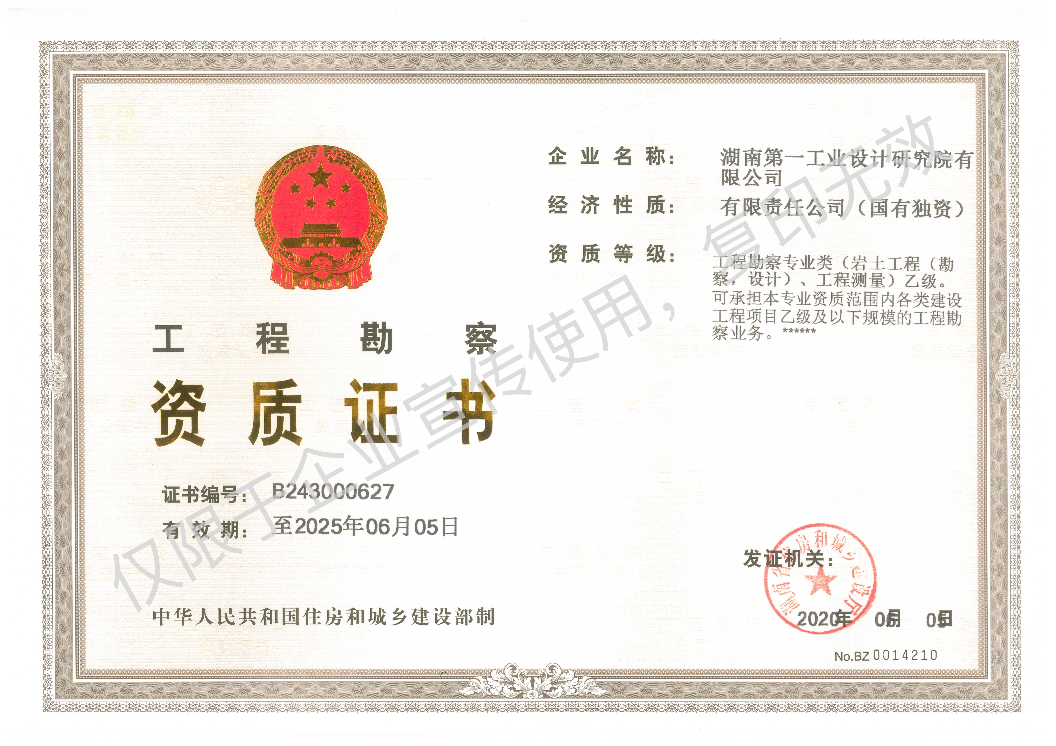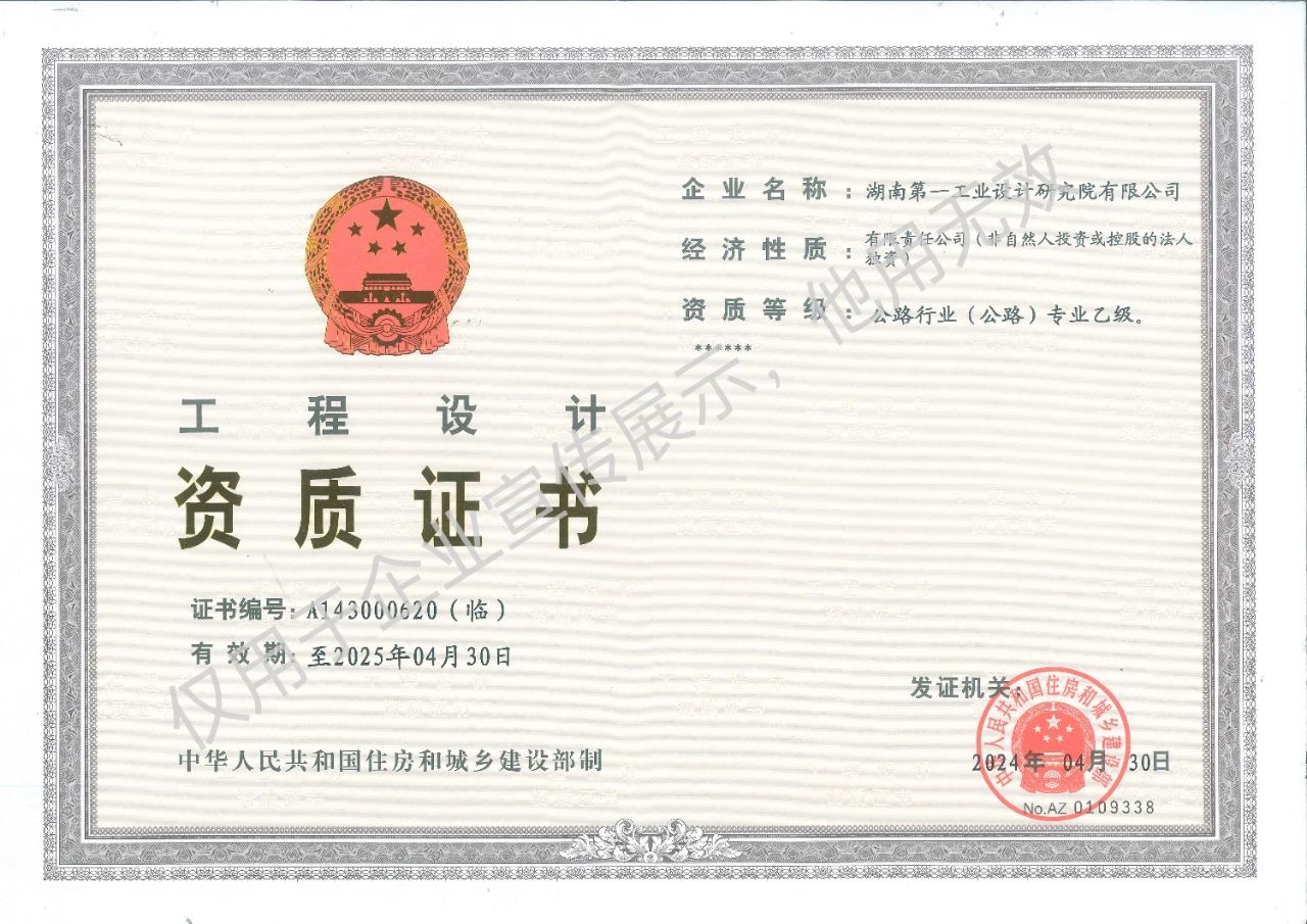 工程設計乙級資質(zhì)證書