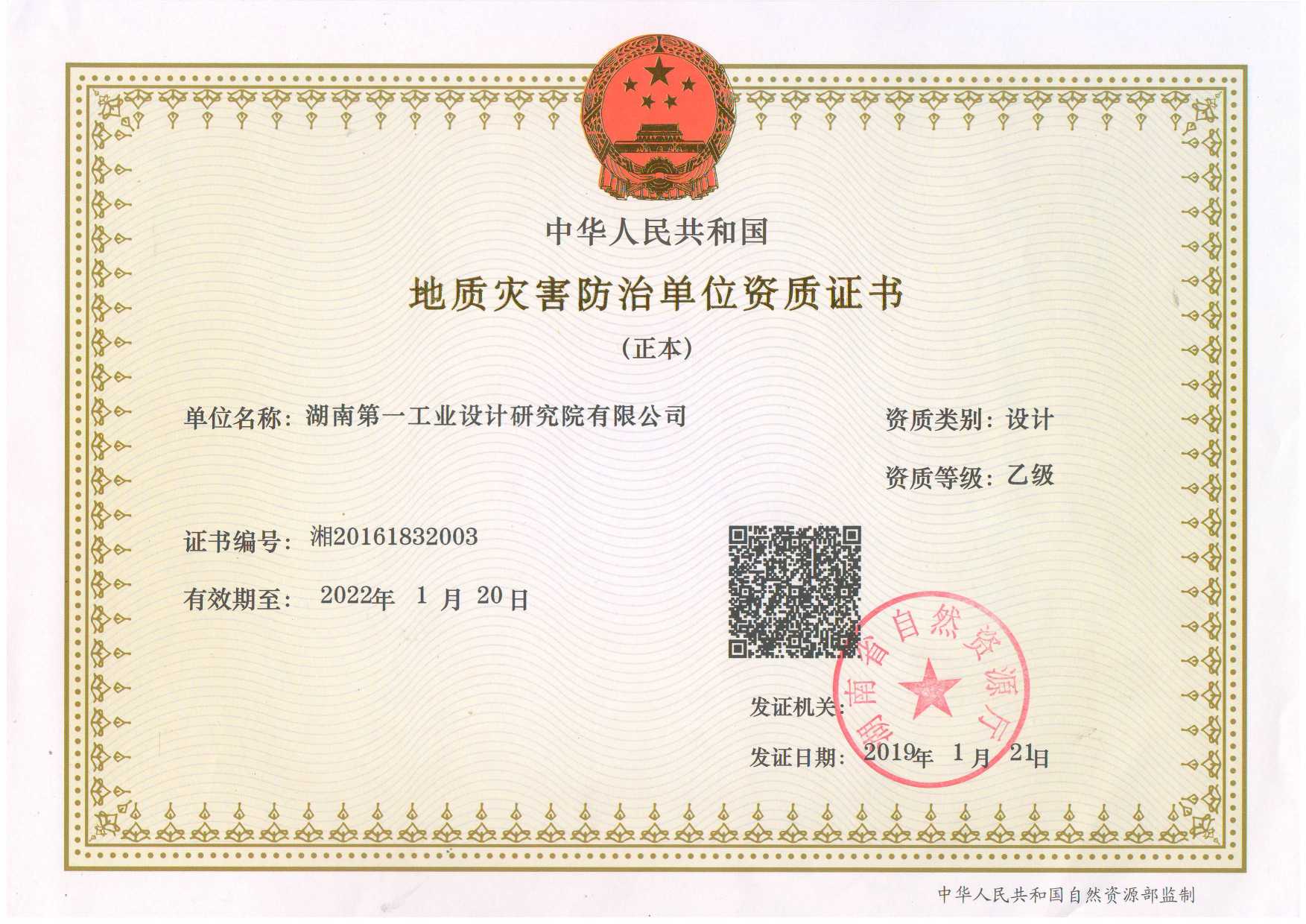 地質(zhì)災害防治單位資質(zhì)證書
